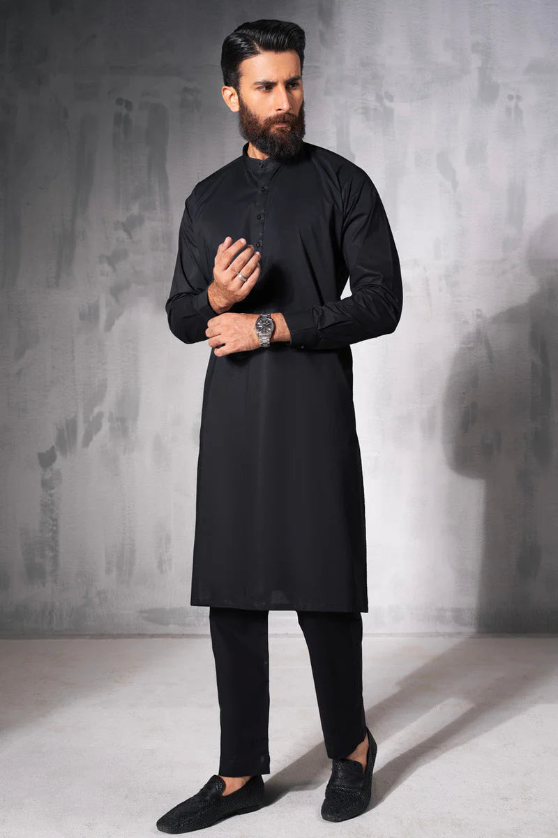 BLACK UNSTITCHED KAMEEZ SHALWAR